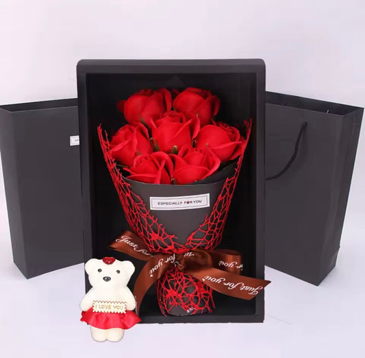 25cm sztuczny miś z kwiatem róży z pudełkiem romantyczny prezent na walentynki dziewczyna kobiety rocznica materiały na przyjęcie weselne